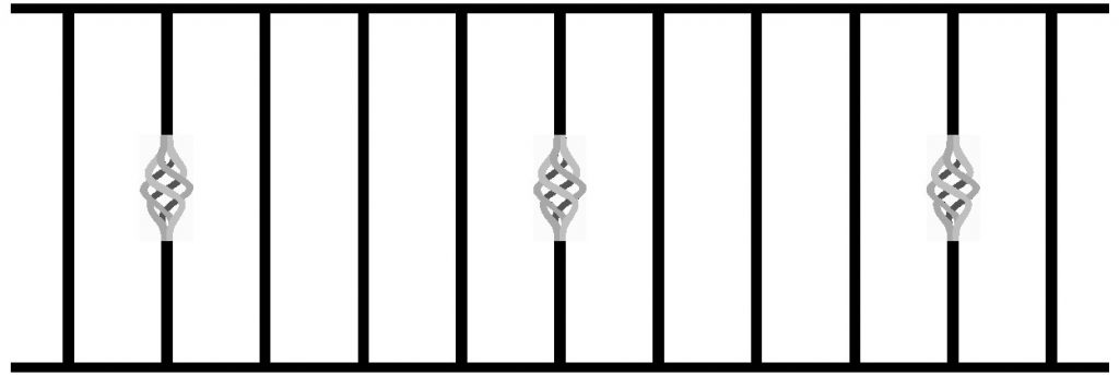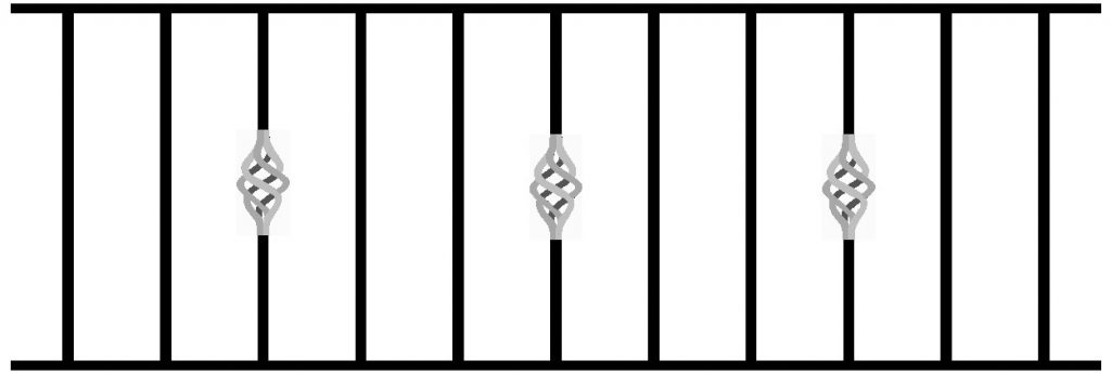 The examples here, 3 baskets spaced at every 4th bar in a railing.