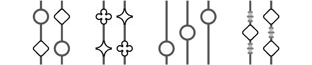 Instead of a double item bar with 2 circles. You can have Circle at top, Diamond at bottom, as an alternative bar you could flip it over. you now have plenty of space. So can make the best of 1 item in a bar but different position. With the extra length in the bars the possibilities for design as you can see start to climb. This has now got to be 50 possible bar variations.