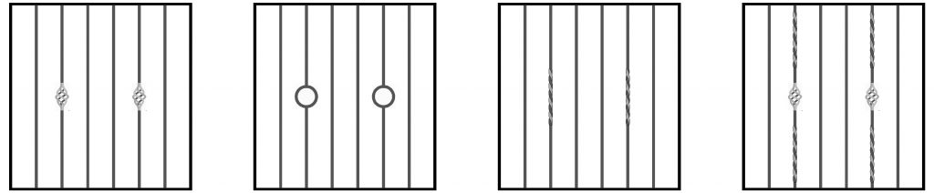 The second one is just the first but upside down. The third is a gap at top and a gap at bottom. The fourth is setting a gap through the centre of the gate to fill with a design, The fifth has all three options, top, middle and bottom. The last is just a plain bar set through the middle, this is common place in taller gates to add strength but can be used in shorter ones if required.