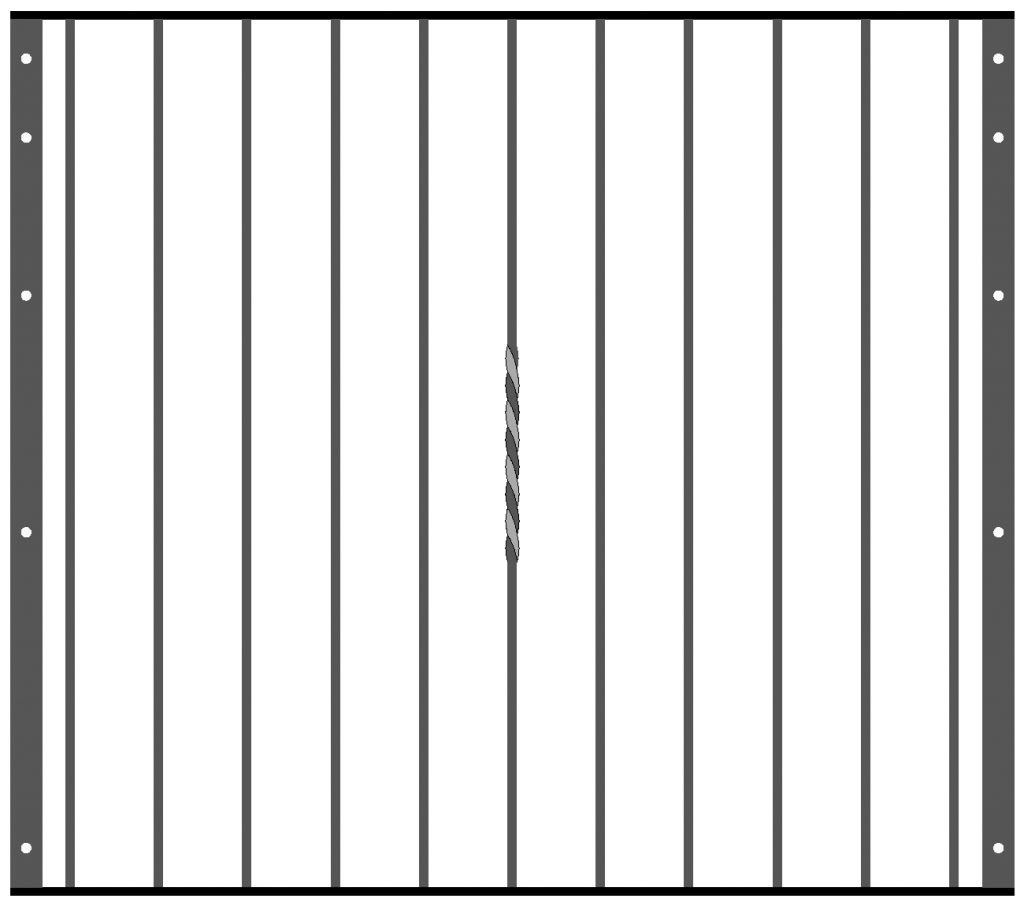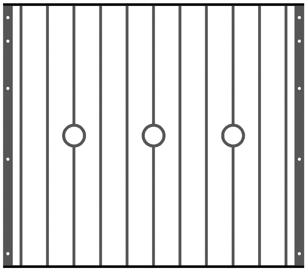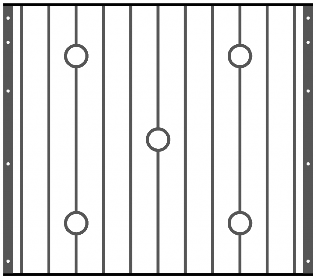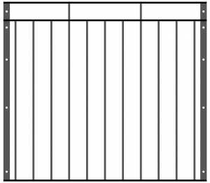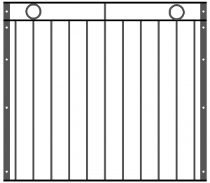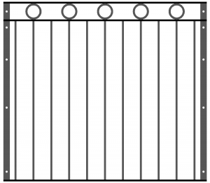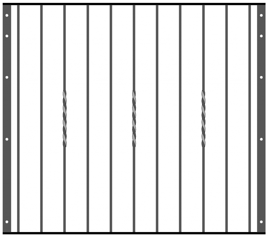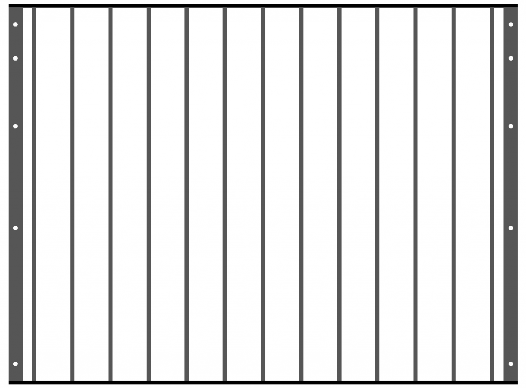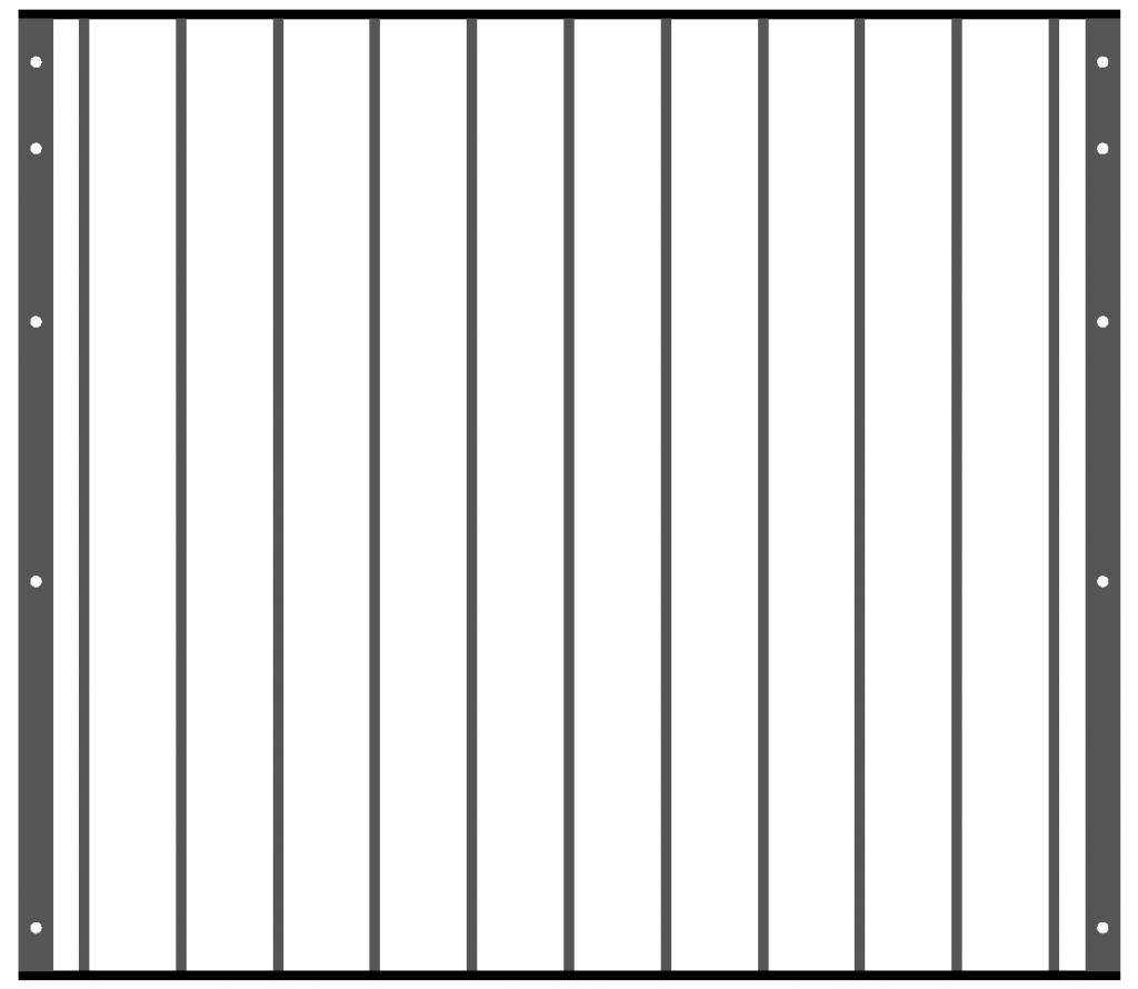 To provide support for the top bar ideally you should be looking at a contact point every 500mm (5 bars) maximum. All drawings base on a 900mm wide door opening (1270mm wide)