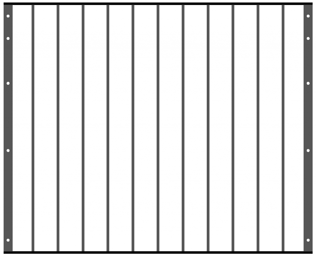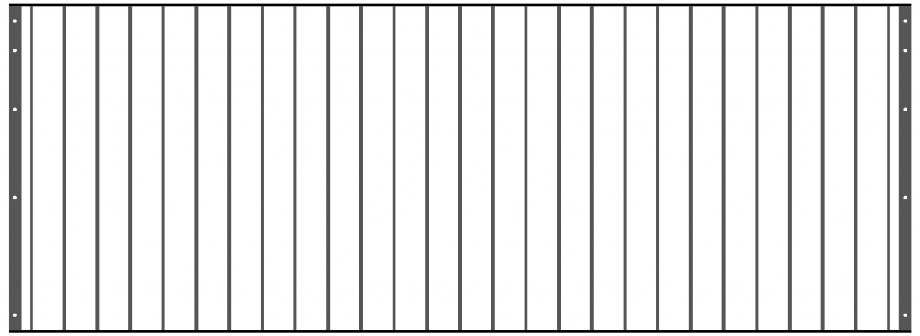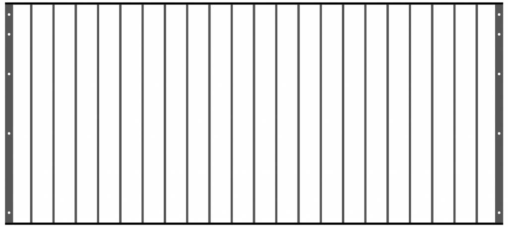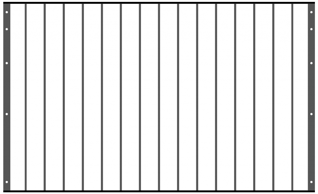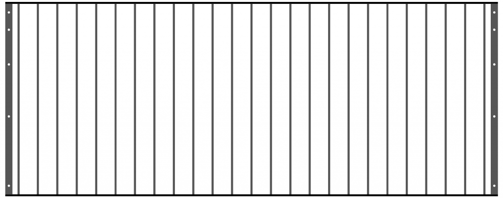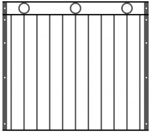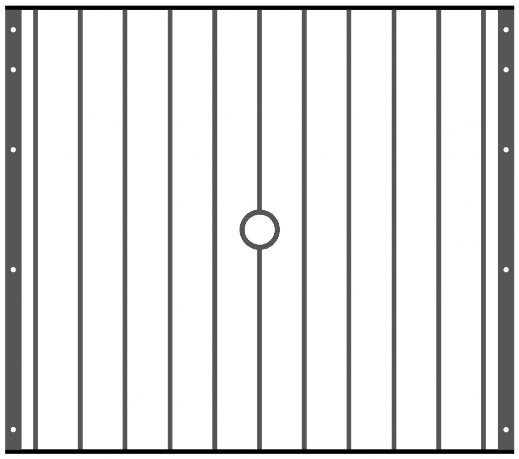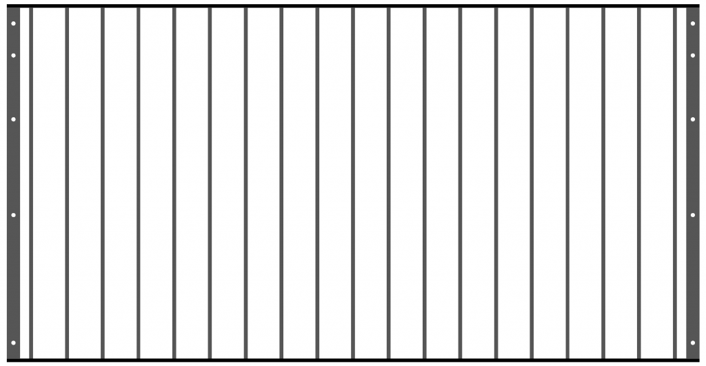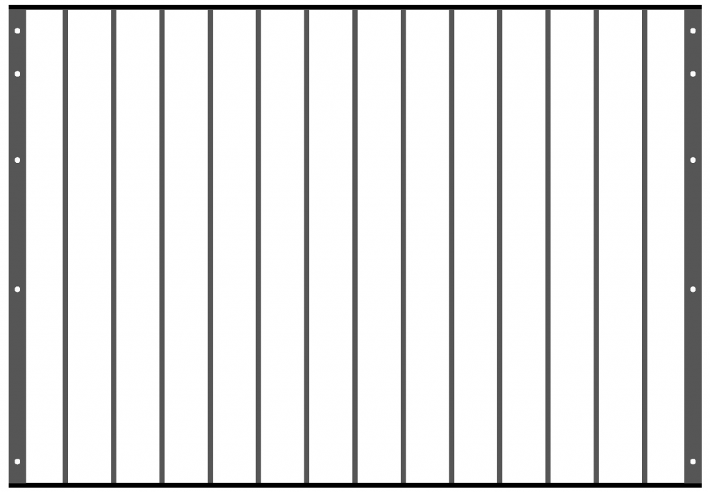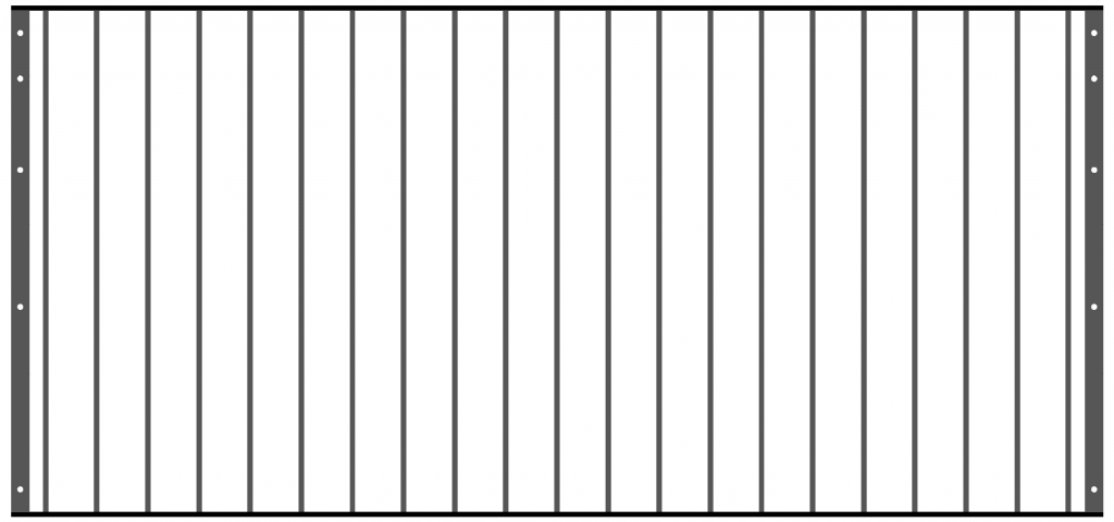 To provide support for the top bar ideally you should be looking at a contact point every 500mm (5 bars) maximum. All drawings base on a 900mm wide door opening (1270mm wide)