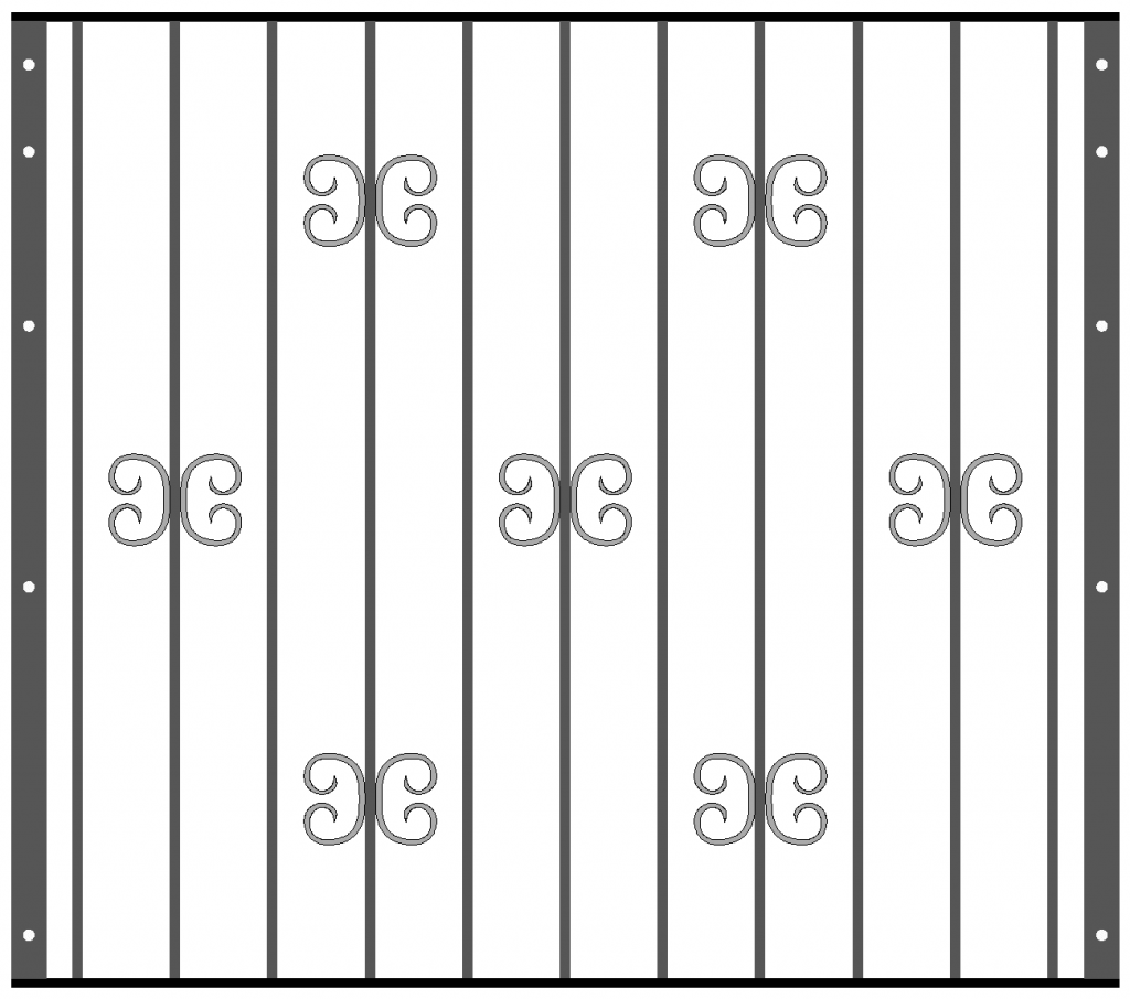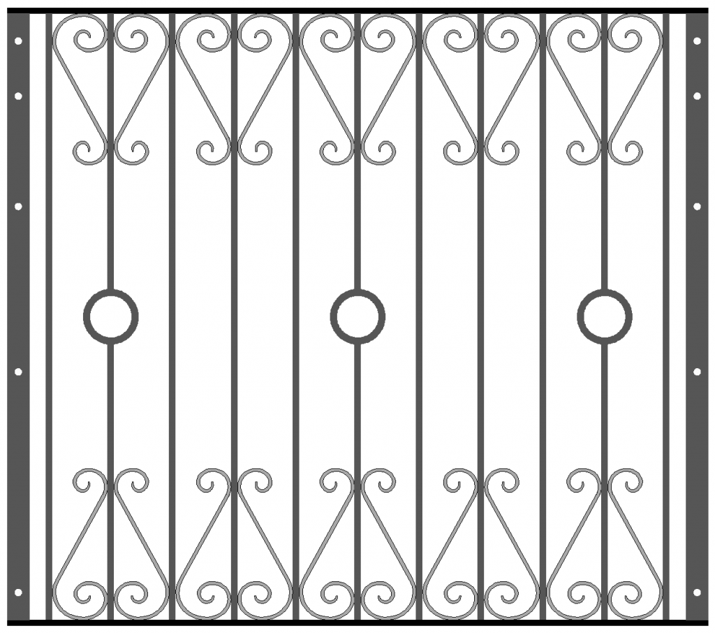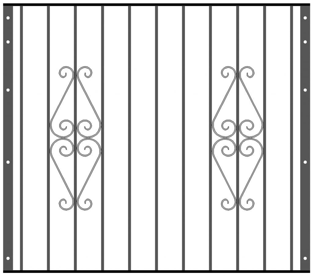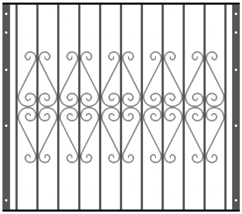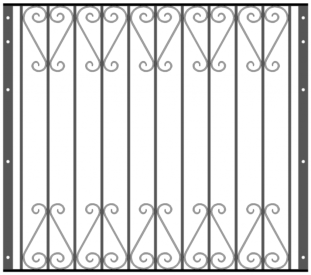 Keep the first and the last bar plain, a twist or circle or basket is ok. But something like a scroll is going to over hang and get in the way of drilling the fixings holes.