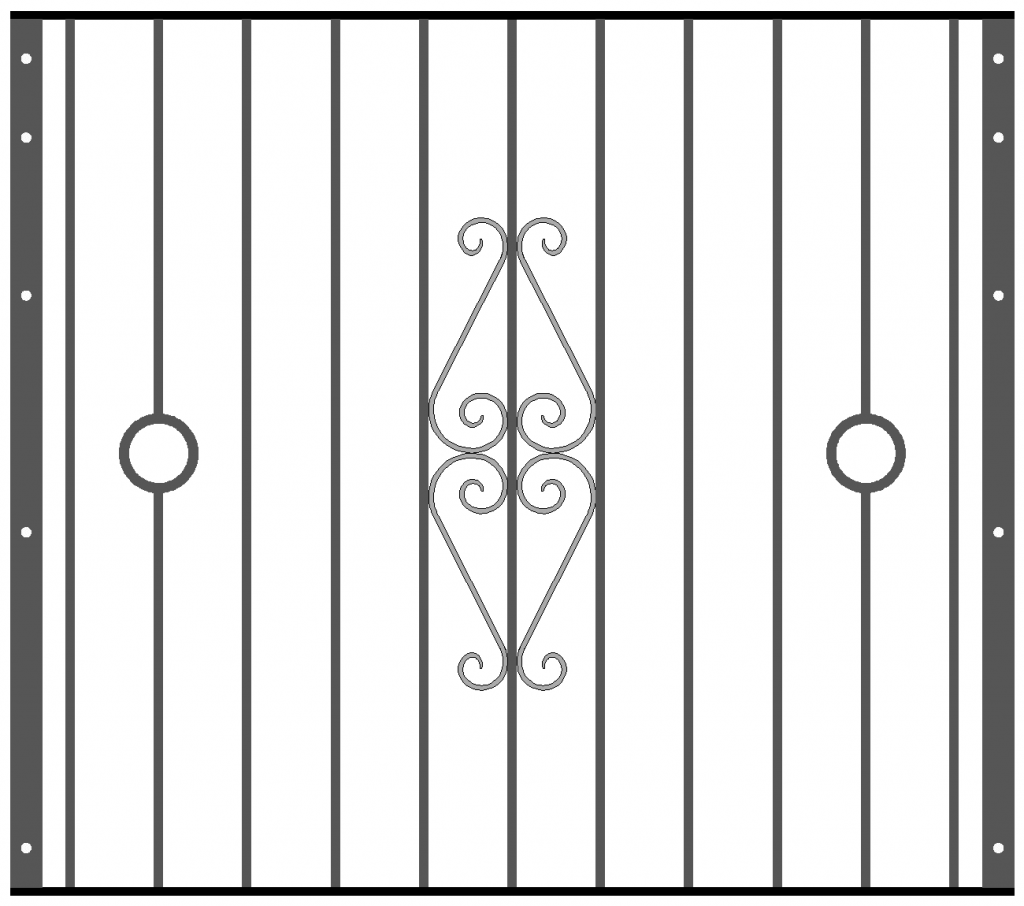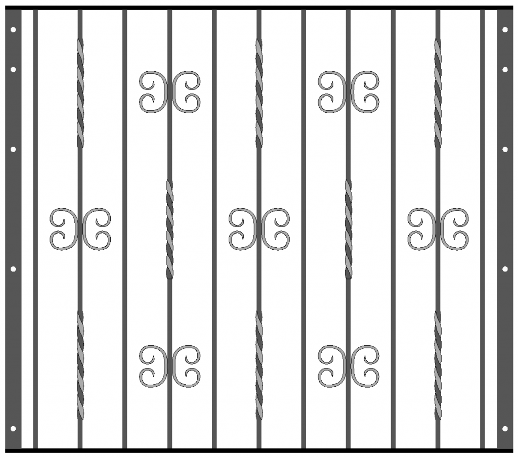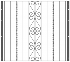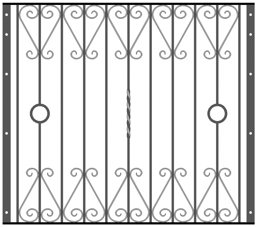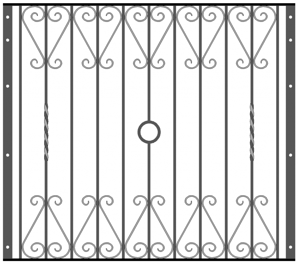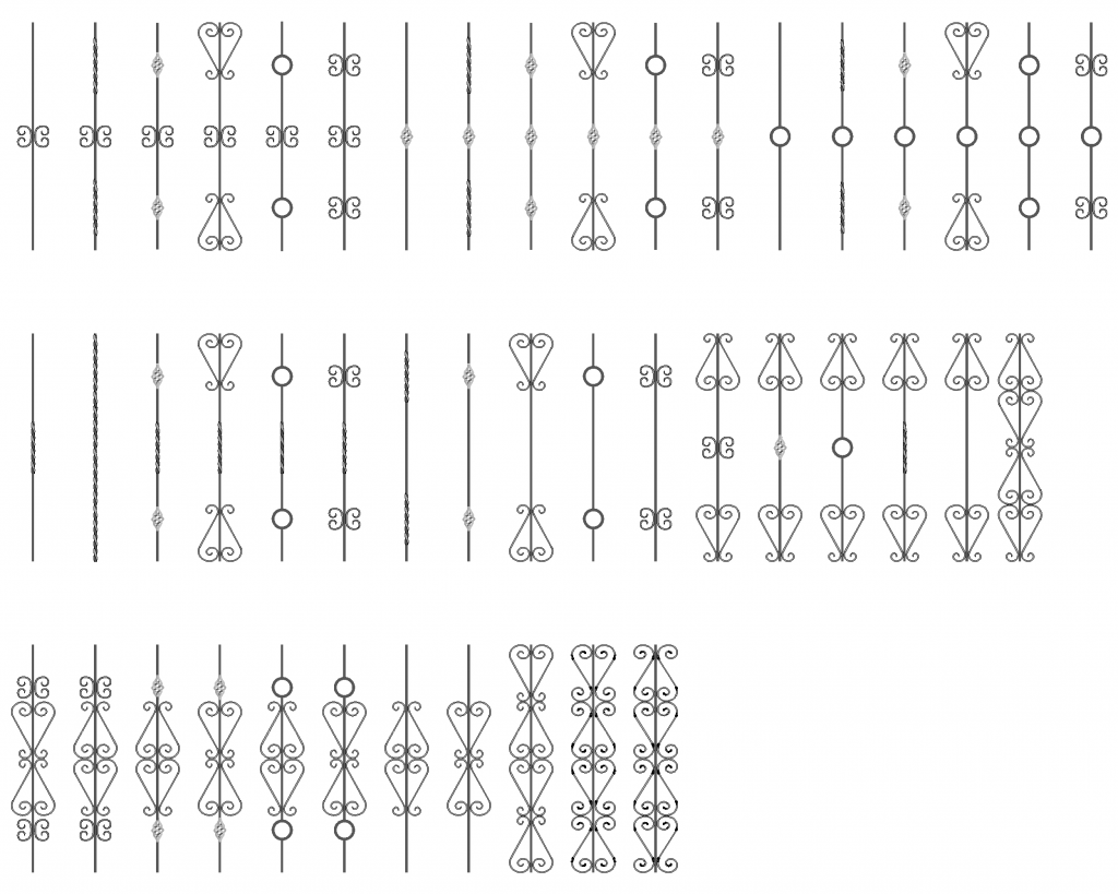 Keep the first and the last bar plain, a twist or circle or basket is ok. But something like a scroll is going to over hang and get in the way of drilling the fixings holes.