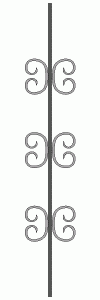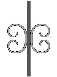 Simple C scroll welded to an upright bar. The C scroll is usually 100mm tall. Width depends on height but at 100mm maximum width is around 65mm. The C scroll can easily be stacked, in that a 300mm bar can accept 3 scrolls high. Welded to the upright with the outer edge being clear of the adjacent upright. But can be made full width of the gap.