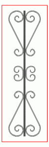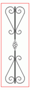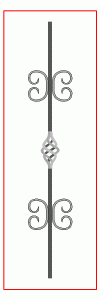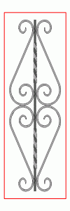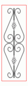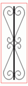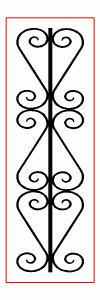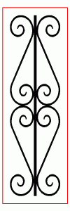 If you have read down as far as this, hopefully its given you some ideas. If you look around the website at the extended designs, more often or not you will notice the decorative bars have been strategically placed. its the same for almost all internet wrought iron designs. A lot depends on the size, on a short railing say 3 ft long you might only want one piece in the centre. Maybe just something from “the strange” section. its enough to make an impact without going over board. On a longer panel this may still work, chances are it will start to look a little plain towards the end. It might be a case of just dotting in something relatively simple. Either splitting the railing into thirds and putting something in each third. Or splitting the railing in two and place a centre piece in each half.