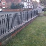 Wrought iron railings are a popular fitment to a wall project. These are usually quite short, often under two foot high, but not always the case. Often bolted between brick piers. but on section with no brick piers steel posts can be used for support. If on a flat wall with no brick piers present. Can be made following a contoured or curved wall. All our metal garden wall railings are made to measure to ensure they fit correctly. Wall railings have been split into two pages, simply because on taller railings you have more space to incorporate a design. Because of this wall railings are split into two sections. Short wall railings that is those below 600mm (2ft) and tall wall railings for those above.